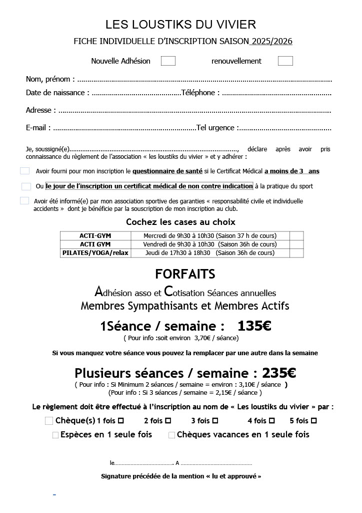 Bulletin d’inscription gym